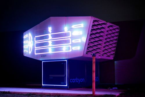 Carbyon GO is Carbyon’s first Direct Air Capture module and the fastest in the world. Its unique sorbent has a massive surface area, reaching 90% CO₂ saturation in just 100 seconds. 200× faster than today’s solutions. This machine captures 3 tons of CO₂ per year, equal to the work of 320 trees and is only our first test machine. Future machines will be even more compact and efficient.